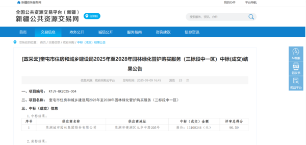近日,園林集團(tuán)在走出去布局上取得關(guān)鍵突破——成功中標(biāo)奎屯市住房和城鄉(xiāng)建設(shè)局“2025年至2028年園林綠化管護(hù)購買服務(wù)(三標(biāo)段中一區(qū))”項目。這標(biāo)志著園林集團(tuán)首次進(jìn)入新疆市場。