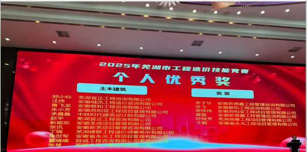 此次獲獎(jiǎng)不僅是對(duì)安徽城訊公司工程造價(jià)專業(yè)水平的有力肯定,也為參賽所有選手提供了一個(gè)展示自我、交流學(xué)習(xí)的寶貴平臺(tái)。安徽城訊將以此次競(jìng)賽為契機(jī),進(jìn)一步提升所有人員的專業(yè)技能和綜合競(jìng)爭力,為公司、為社會(huì)培養(yǎng)更多懂技術(shù)、會(huì)管理、能創(chuàng)新的高素質(zhì)工程造價(jià)專業(yè)人才,為推動(dòng)區(qū)域建筑業(yè)高質(zhì)量發(fā)展貢獻(xiàn)力量,繼續(xù)精益求精,成為優(yōu)秀的工程造價(jià)從業(yè)者。