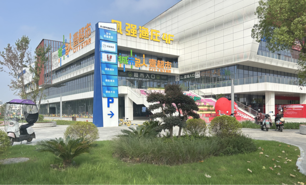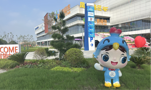 而在臺階區(qū)域,用多組花箱并列擺放的方式,種植夏鵑、美女櫻、火焰南天竹、迷迭香等花鏡植物,同時巧妙點植造型蜜桔樹,擺放宜鄰中心吉祥物“宜小鄰”,塑造了活潑生動的環(huán)境氛圍。
