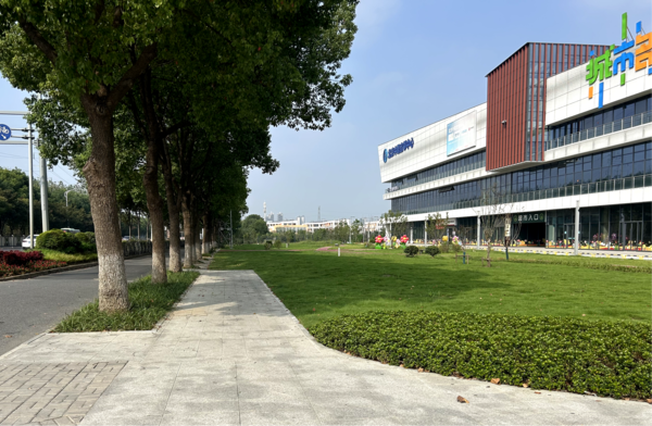 在方案設計環(huán)節(jié),團隊摒棄門口綠化傳統(tǒng)模式,精心打造花鏡組團景觀。上木選用造型獨特的紅果冬青、黑松、亮晶女貞球等,下木以草坪做底搭配銀葉菊、無盡夏繡球、金邊六月雪、德國鳶尾、火焰南天竹和細葉萼距花等植物,通過高低錯落的植物組合,營造出豐富的視覺層次,傳遞出溫馨友好的氛圍。